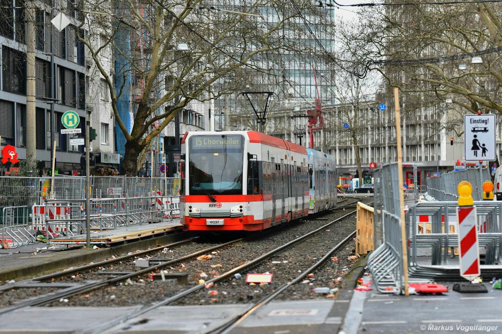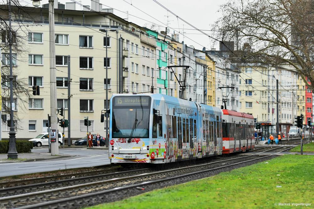 4023 als Linie 15 mit dem Fahrtziel Ulrepforte kurz nach der Haltestelle Eifelstraße am 03.03.2019.
