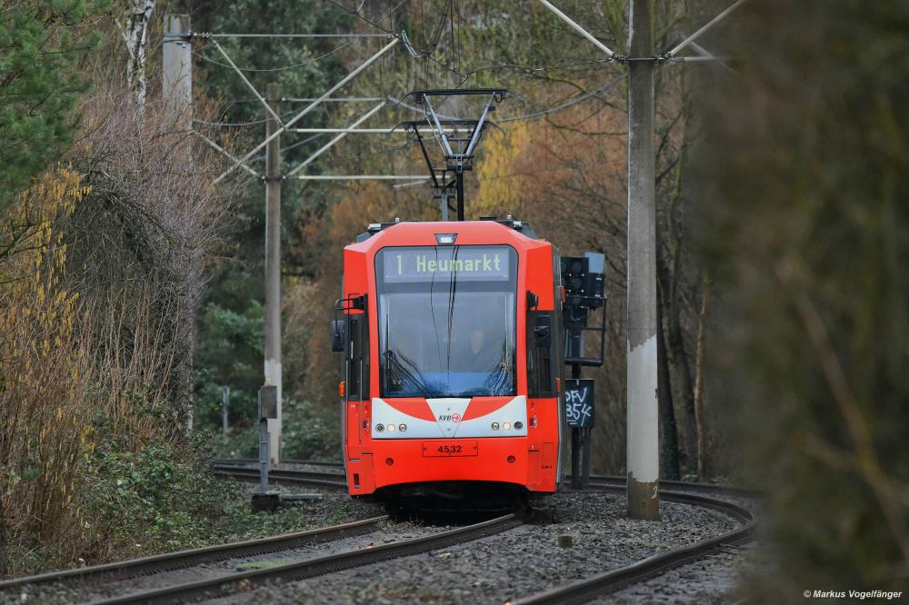 4532 als Linie 1 mit dem Fahrtziel Heumarkt kurz nach der Haltestelle Flehbachstraße am 03.03.2019.