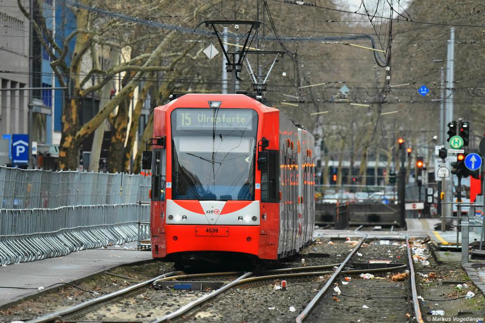 4539 als Linie 15 mit dem Fahrtziel Ulrepforte zwischen Zülpicher und Barbarossaplatz am 03.03.2019.