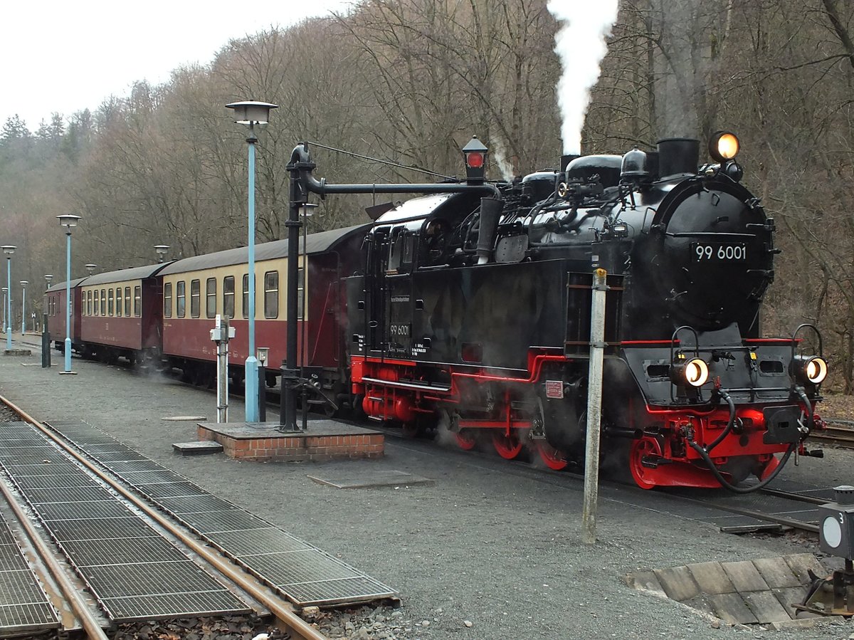 99 6001 der HSB am 02.03.19 in Alexisbad beim Wasserfassen.