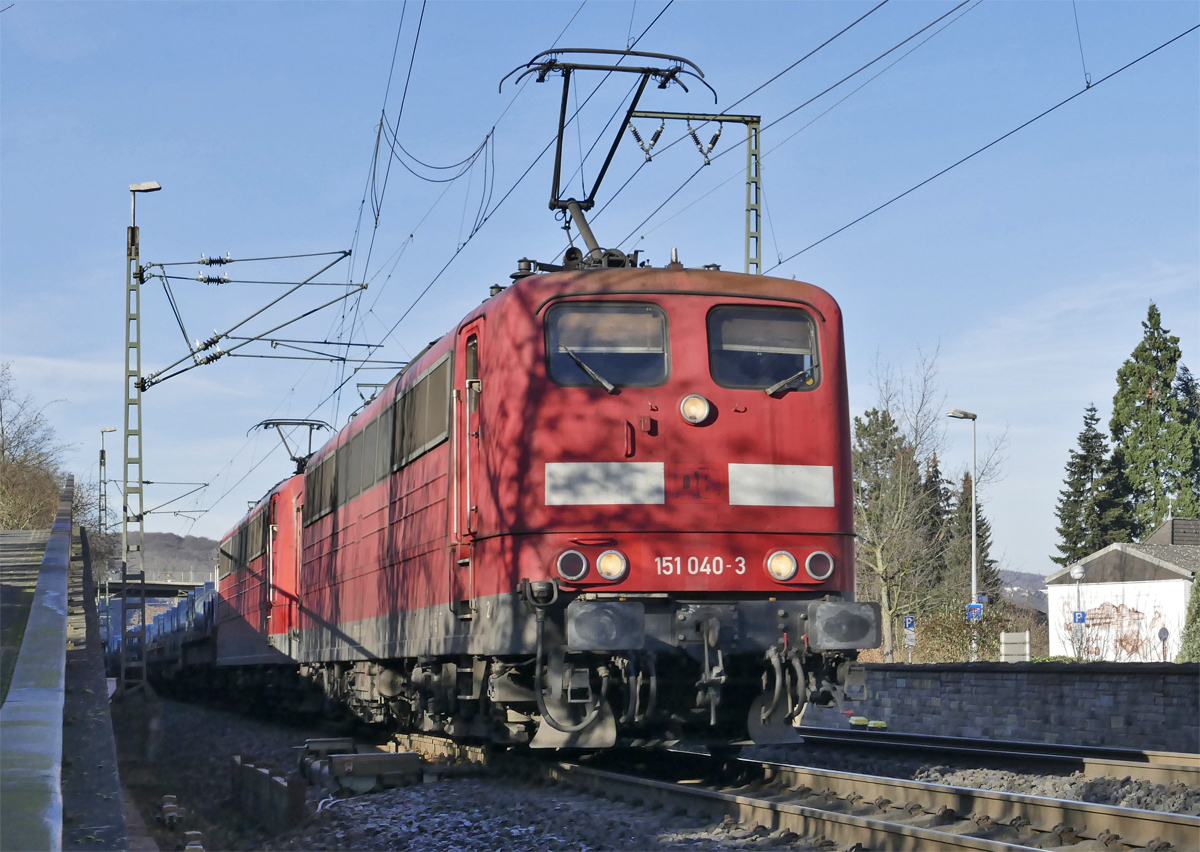 485 017-8 von BLS kommt mit dem Cargobeamer-KLV-Zug aus Domodossola(CH) nach Kaldenkirchen(D) und kommt aus Richtung Koblenz und fährt durch Rolandseck in Richtung Bonn,Köln.