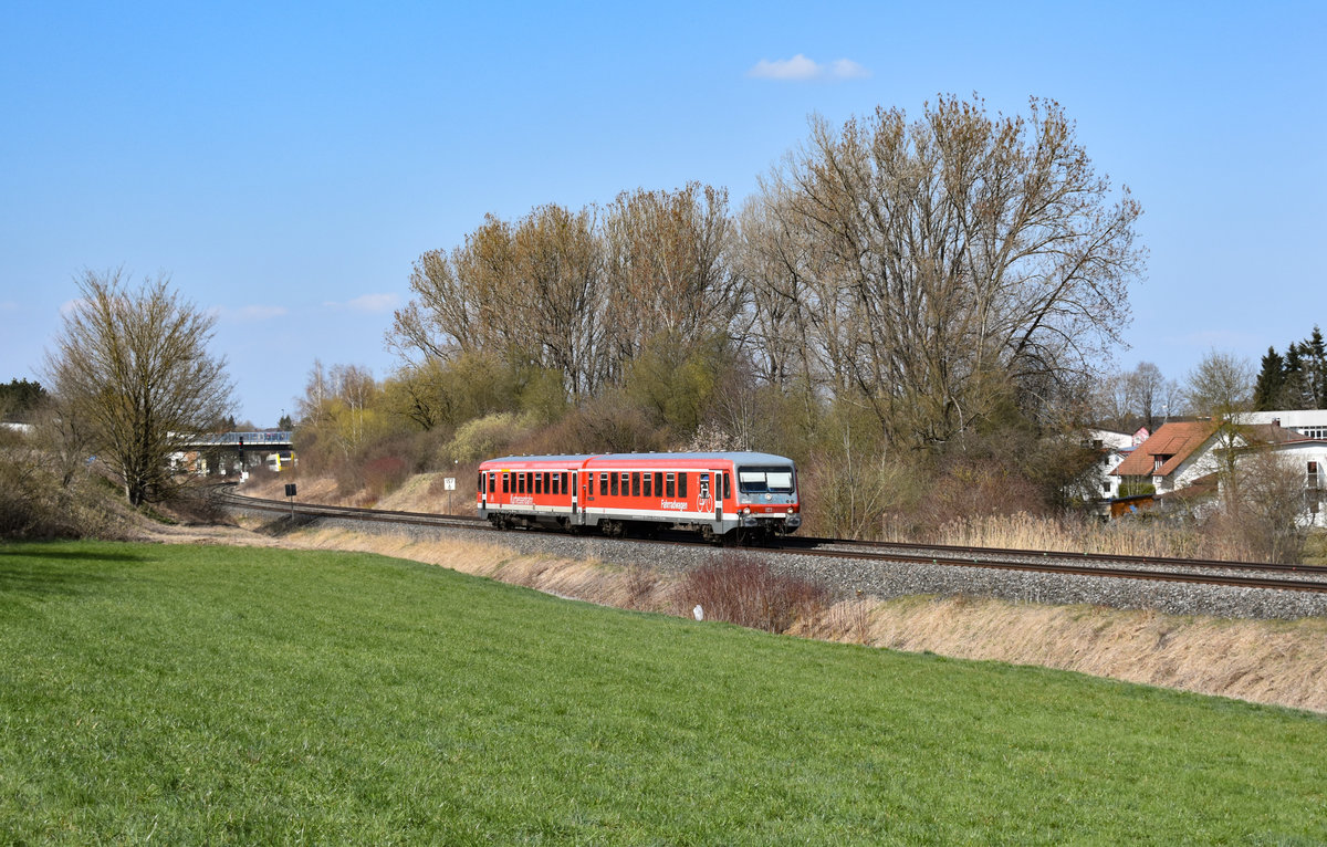 628 255 der Kurhessenbahn als RE nach Lindau Hbf bei Aulendorf, März 2019