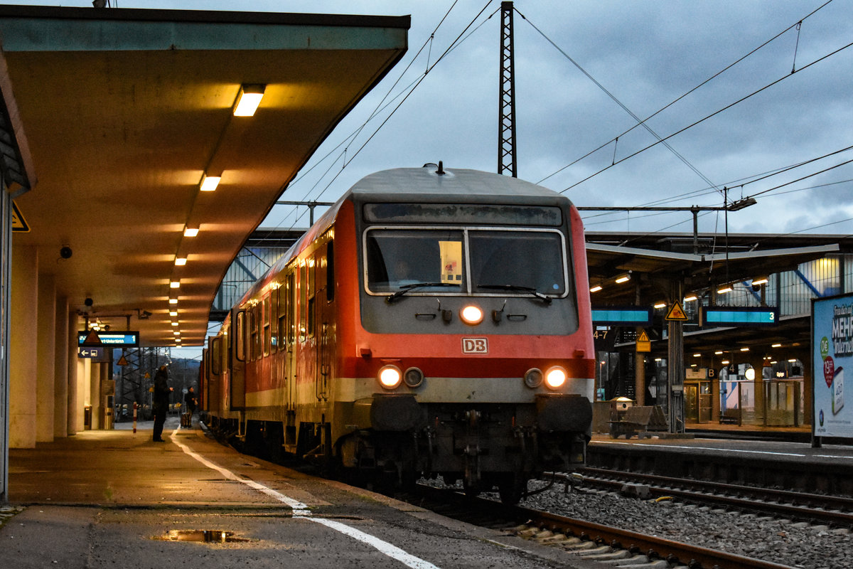 Um Fahrzeugmangel der RAB zu decken ist 628 540 derzeit leihweise bei der RAB in Ulm! Hier steht er als RE nach Crailsheim im Ulmer Hbf, April 2019