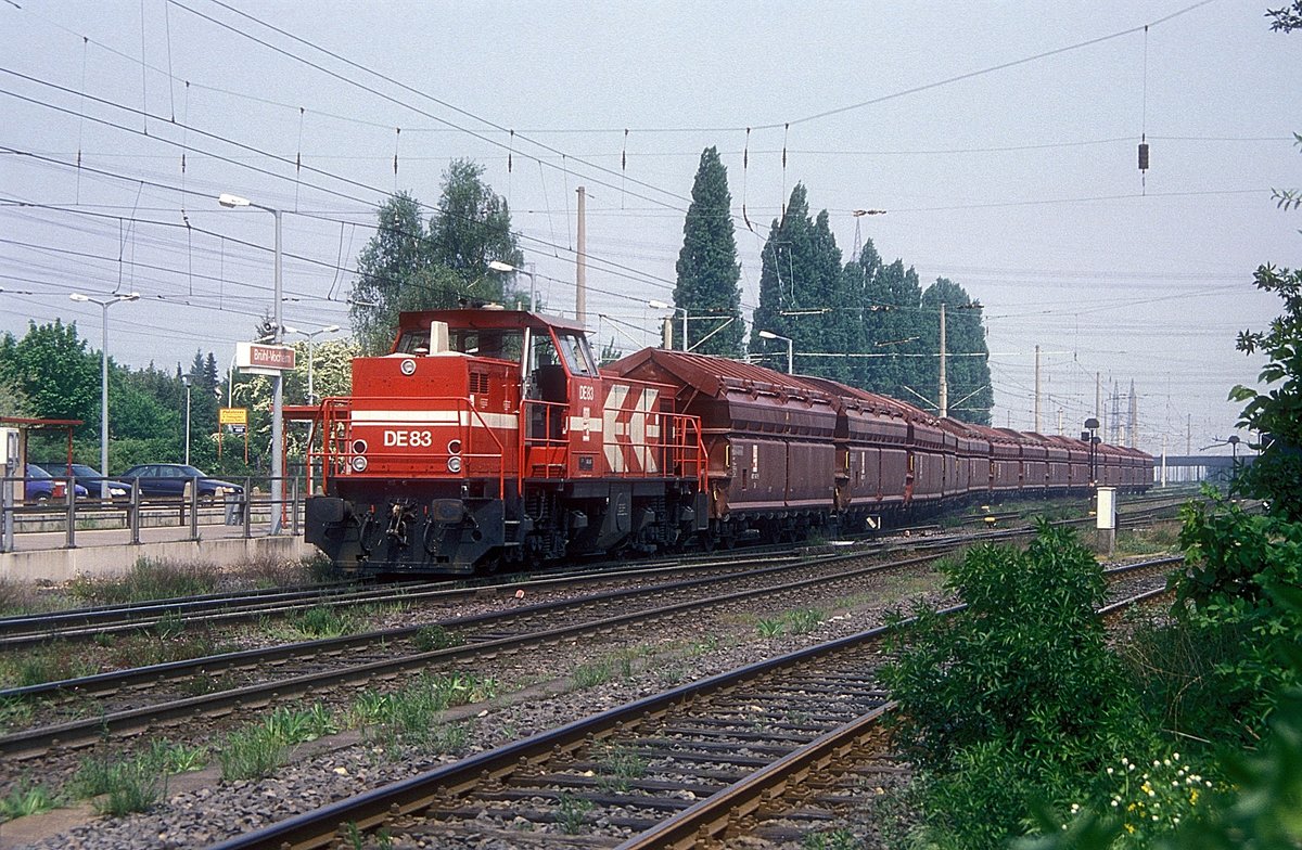 DB 145025-3 fährt mit einem Güterzug in Richtung Münster am 29.02.2004 um 9.30 Uhr in Hasbergen ab, wo der Zug zuvor wegen einer Überholung auf das Ausweichgleis musste.