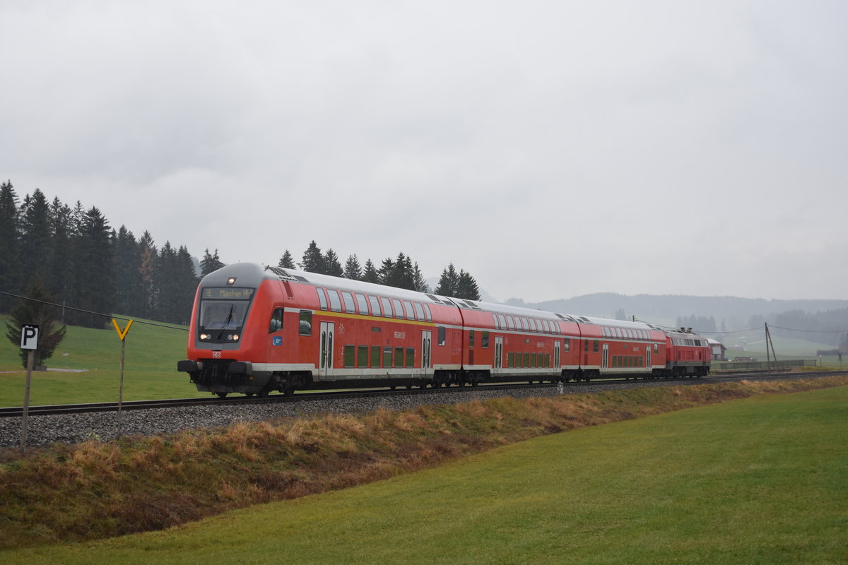 Als die REs München - Füssen noch in Hand von DB Regio waren, eilt dieser 3x Teiler mitte Dezember Richtung München, nähe Füssen