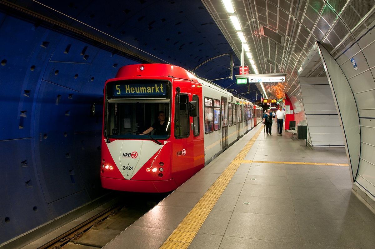 Der U-Bahnhof der KVB Linie 5 an der U-Bahnstation Rathaus. Aufgenommen am 24.5.2019.