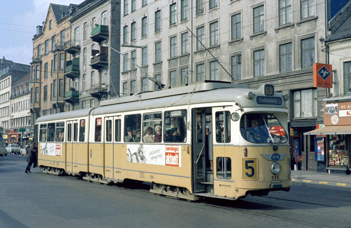 København / Kopenhagen Københavns Sporveje SL 5 (DÜWAG/Kiepe-GT6 896) København N, Nørrebro, Nørrebrogade / Sjællandsgade am 10. April 1971. - Scan eines Farbnegativs. Film: Kodak Kodacolor X.