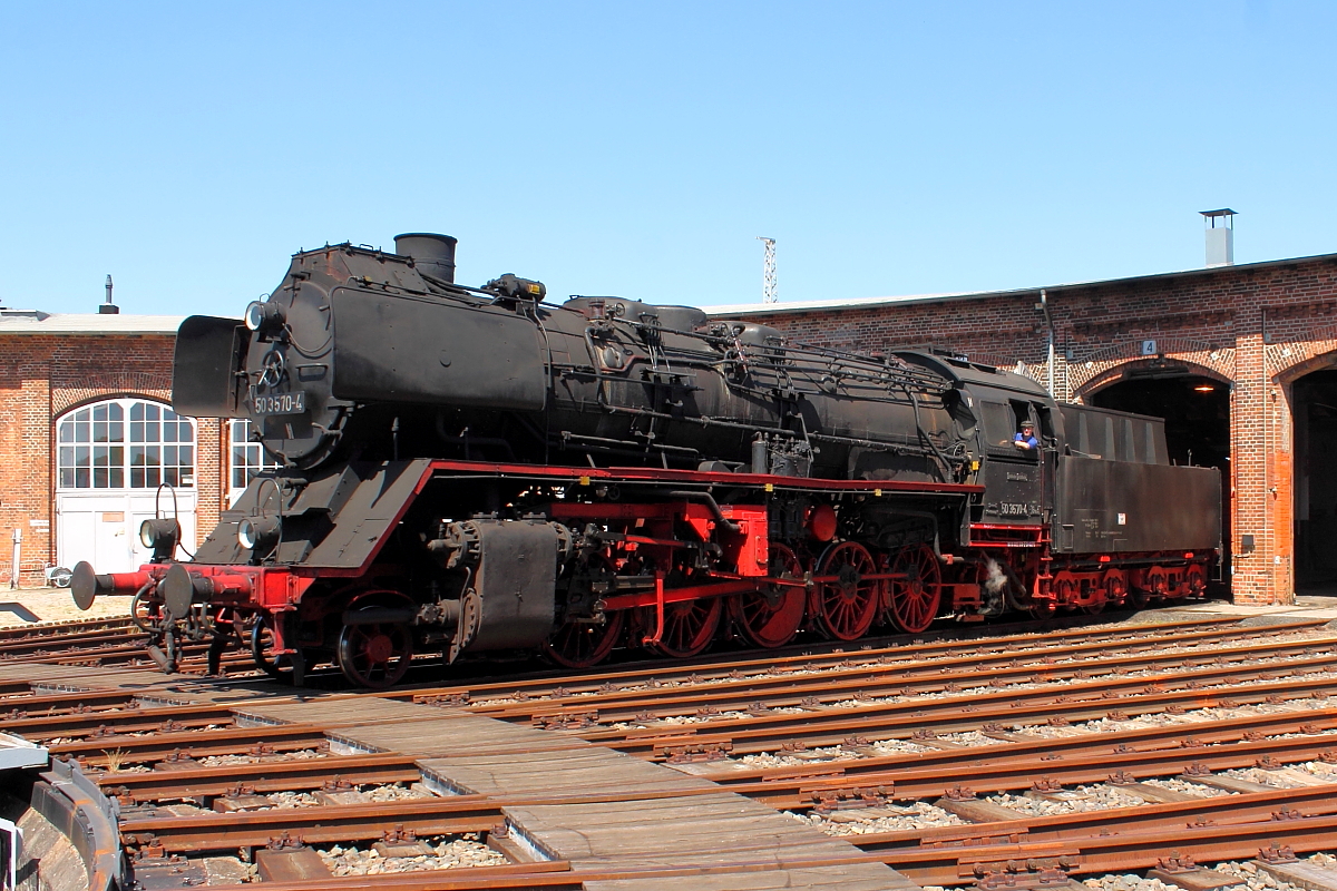 Die 50 3570-4 beim Sommerdampf im historischen Lokschuppen am 07.07.2018 in Wittenberge.