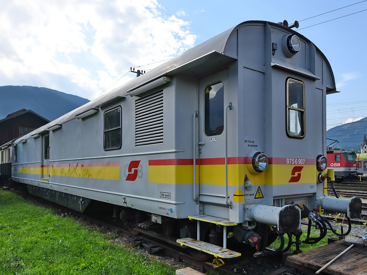 Der Bahnpostwagen Bpw 50 81 00-03 910-8 war Ende August 2019 im Außenbereich des Heizhauses Lienz zu sehen.
