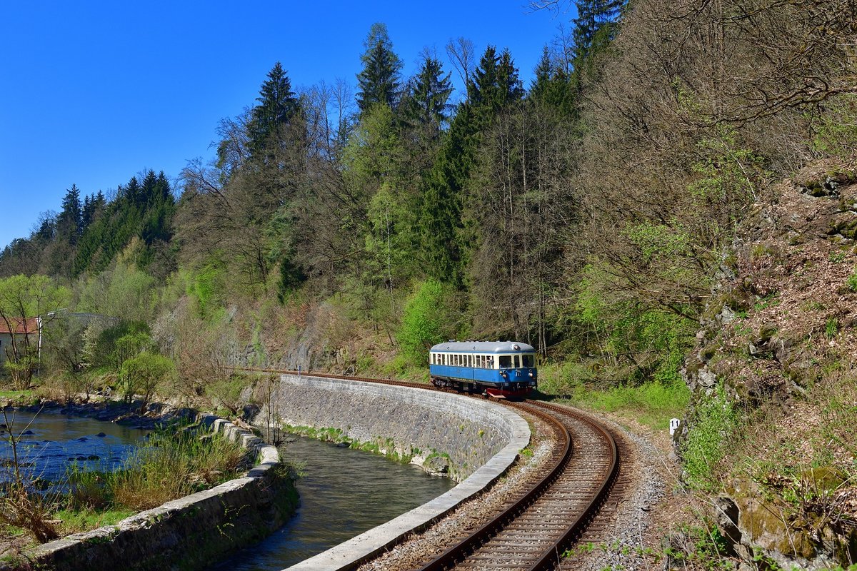 Zwischen der Haltestelle Dolni Louck und dem Westportal des Loucsky Tunnel wird im Strecken-Km 35,6 der KBS-Strecke 250 (Brno - Havlíčkův Brod) mit der 300m langen und 30m hohen Brücke des Friedens (Most míru) das Tal der Libochovka überquert. Der 120 m lange Hauptbogen gilt als längster Eisenbetonbogen Tschechiens. Bild vom 24.August 2019.