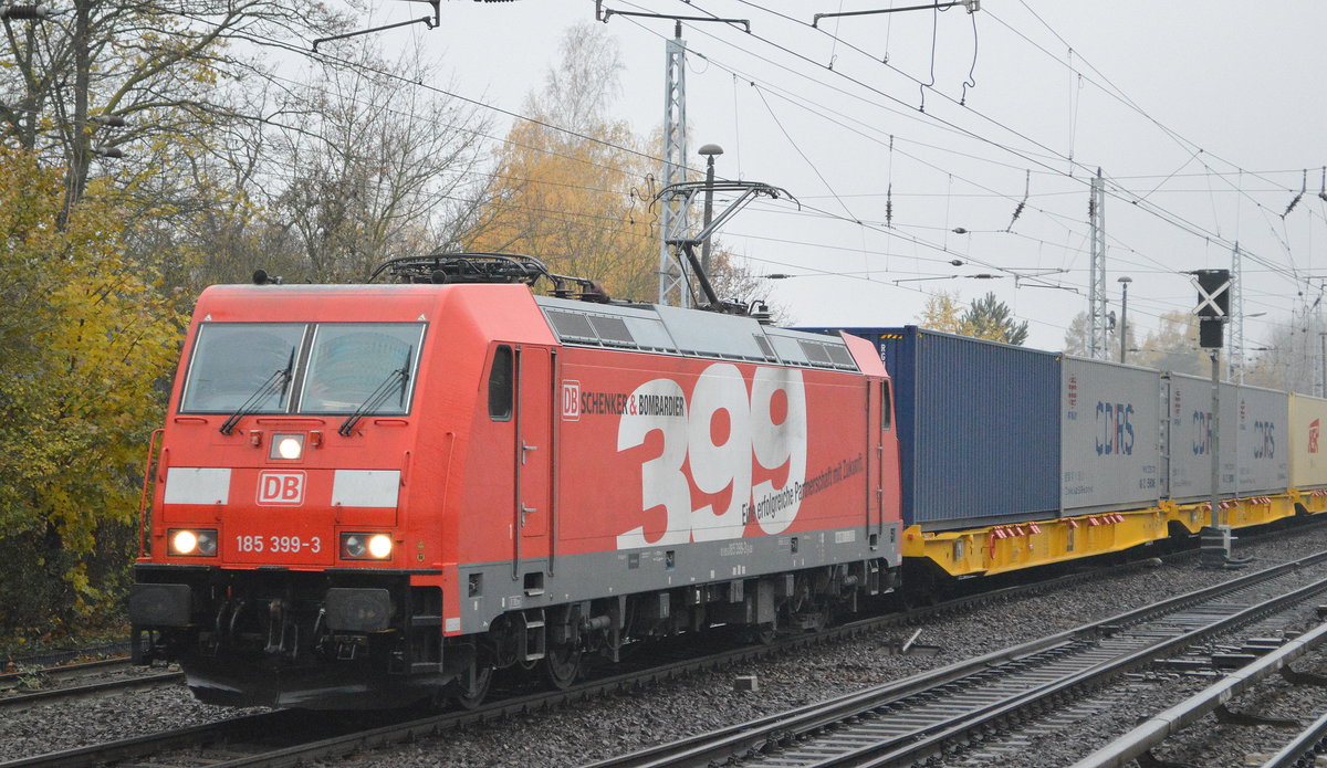 DB Cargo AG [D] mit "185 399-3" [NVR-Nummer: 91 80 6185 399-3 D-DB] und Containerzug Richtung Frankfurt/Oder am 09.11.19 Berlin Hirschgarten.