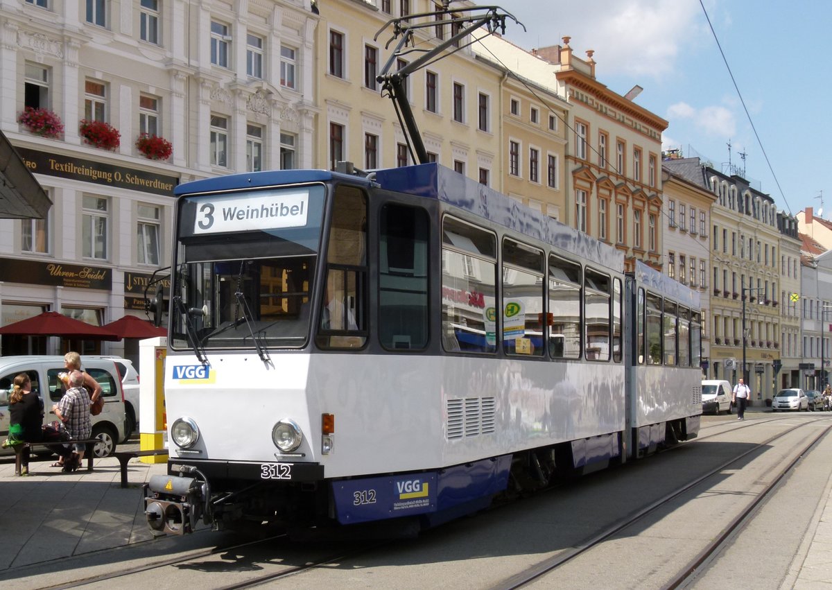 20. Juli 2015, Straßenbahn in Görlitz. Tw 312 wurde 1992 von Erfurt übernommen.