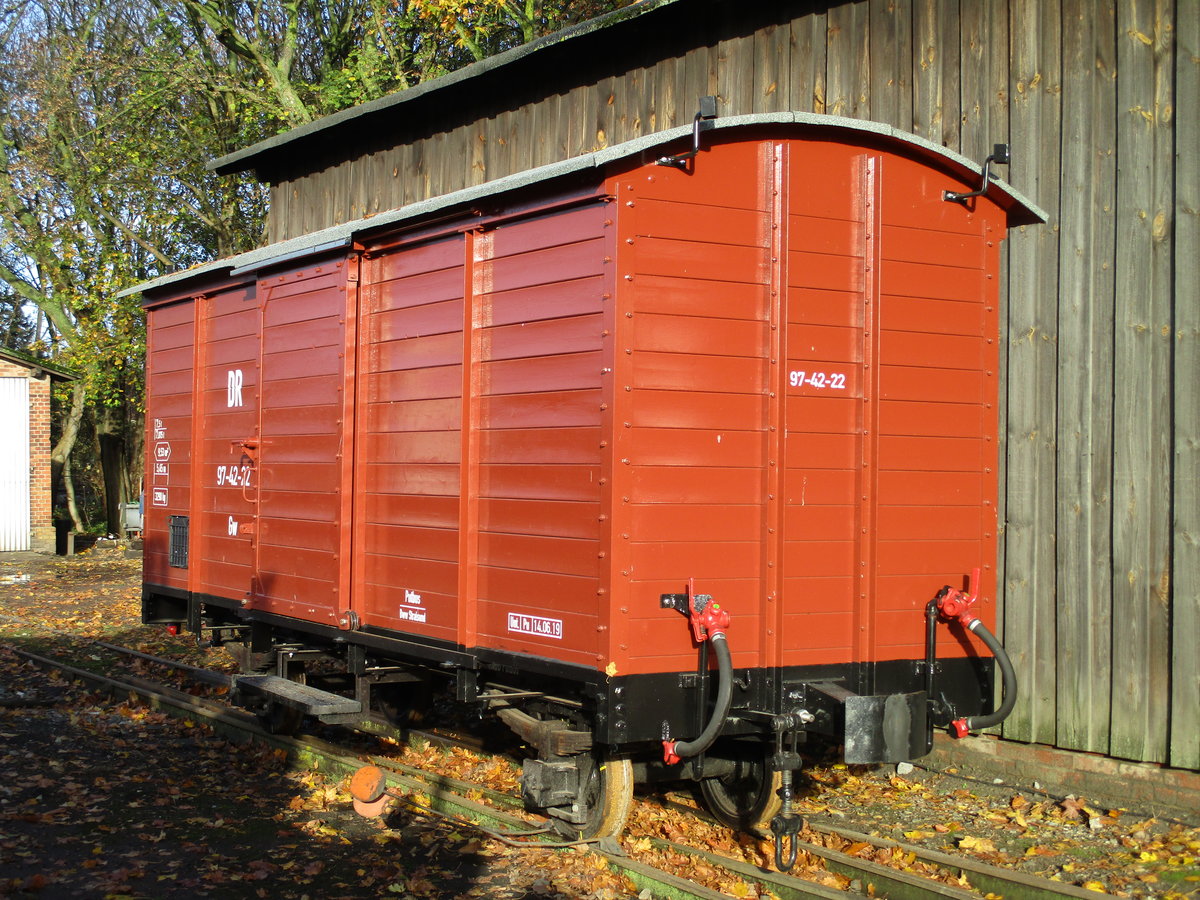 Ohne Seitenwände stand der Ow 97-40-75,am 03.November 2019,in Putbus.
