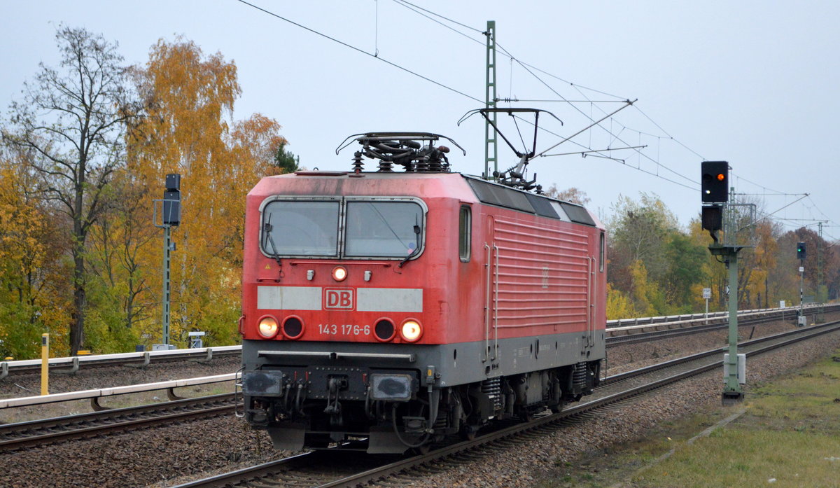 DeltaRail GmbH, Frankfurt (Oder) mit der seit 23.09.19 angemieteten  143 176-6  (NVR-Nummer:   91 80 6143 176-6 D-DB ) am 18.11.19 Durchfahrt Bf. Berlin Jungfernheide Richtung Spandau.