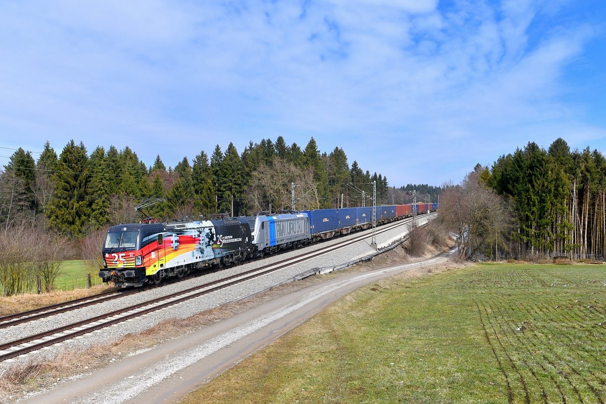 193 282 ELL/TXL mit einem Containerzug bei Gundelsheim Richtung Donauwörth, 28.06.2019