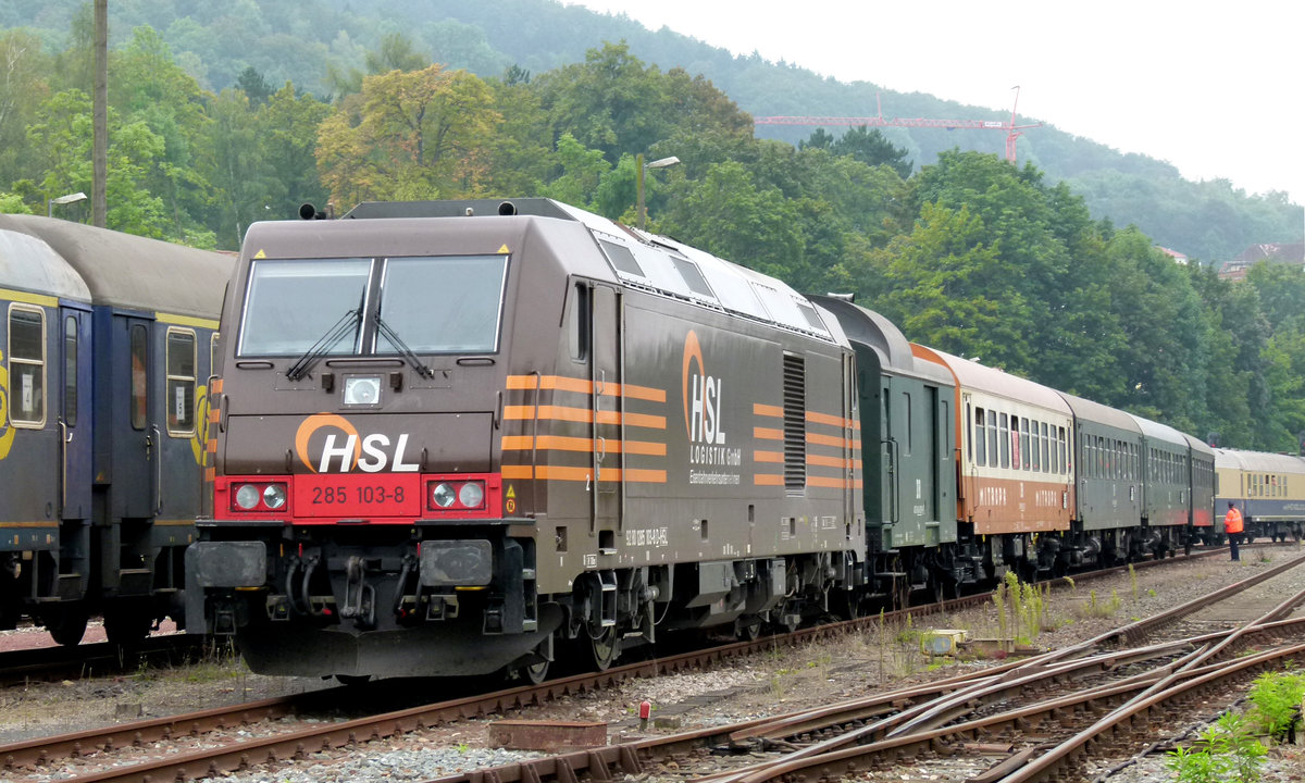 06. September 2014, Zu den Meininger Dampfloktagen kamen auch Besucher mit einem Zug aus Magdeburg. Befördert wurde er von Lok 285 103 der HSL.