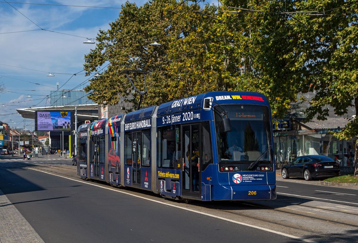 Graz, Stadler Variobahn 206 als Linie 4 beim Ostbahnhof, 16.09.2019