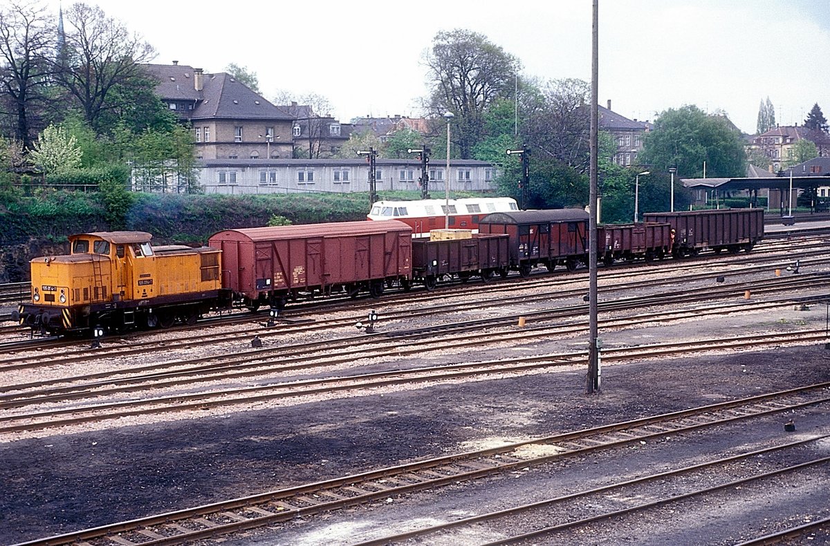 08. Mai 1982, bei Dresden-Klotzsche, Lok 52 8123 befördert planmäßig den Personenzug von Königsbrück.