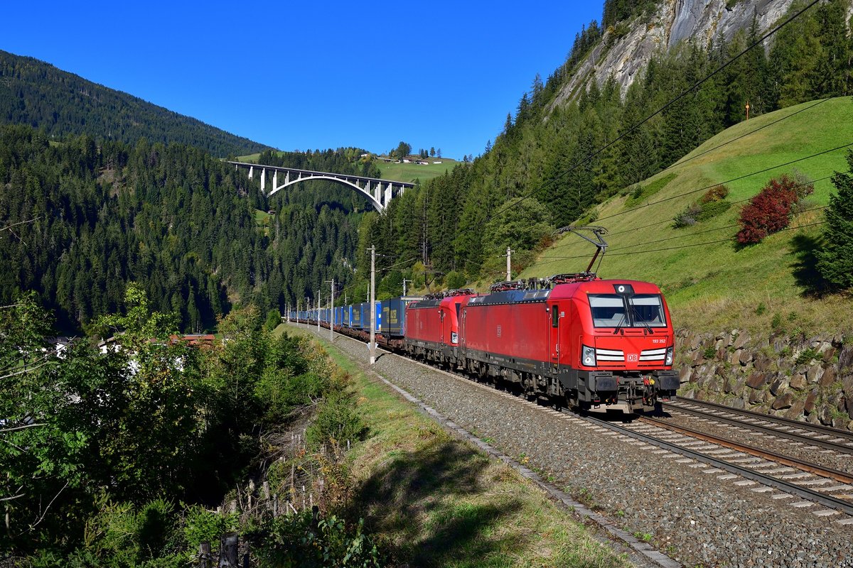 193 352 + 193 347 mit TEC 42153 am 12.10.2019 bei St. Jodok am Brenner.