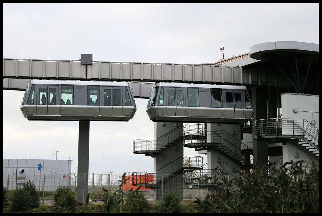 Ein Zug der Flughafen Bahn in Düsseldorf verlässt hier am 7.10.2019 den Bahnhof in Richtung Terminal.