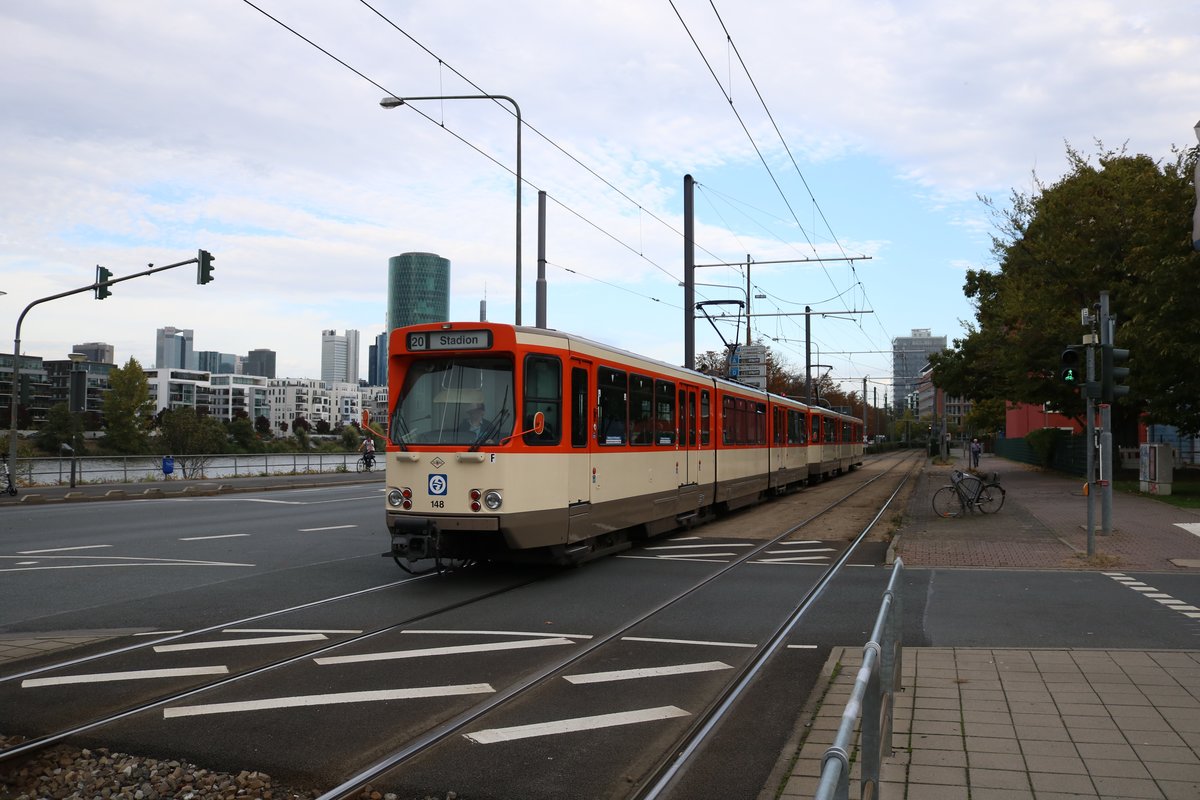 VGF Düwag Pt-Wagen 148+138 am 05.10.19 in Frankfurt am Main als Stadionverkehr