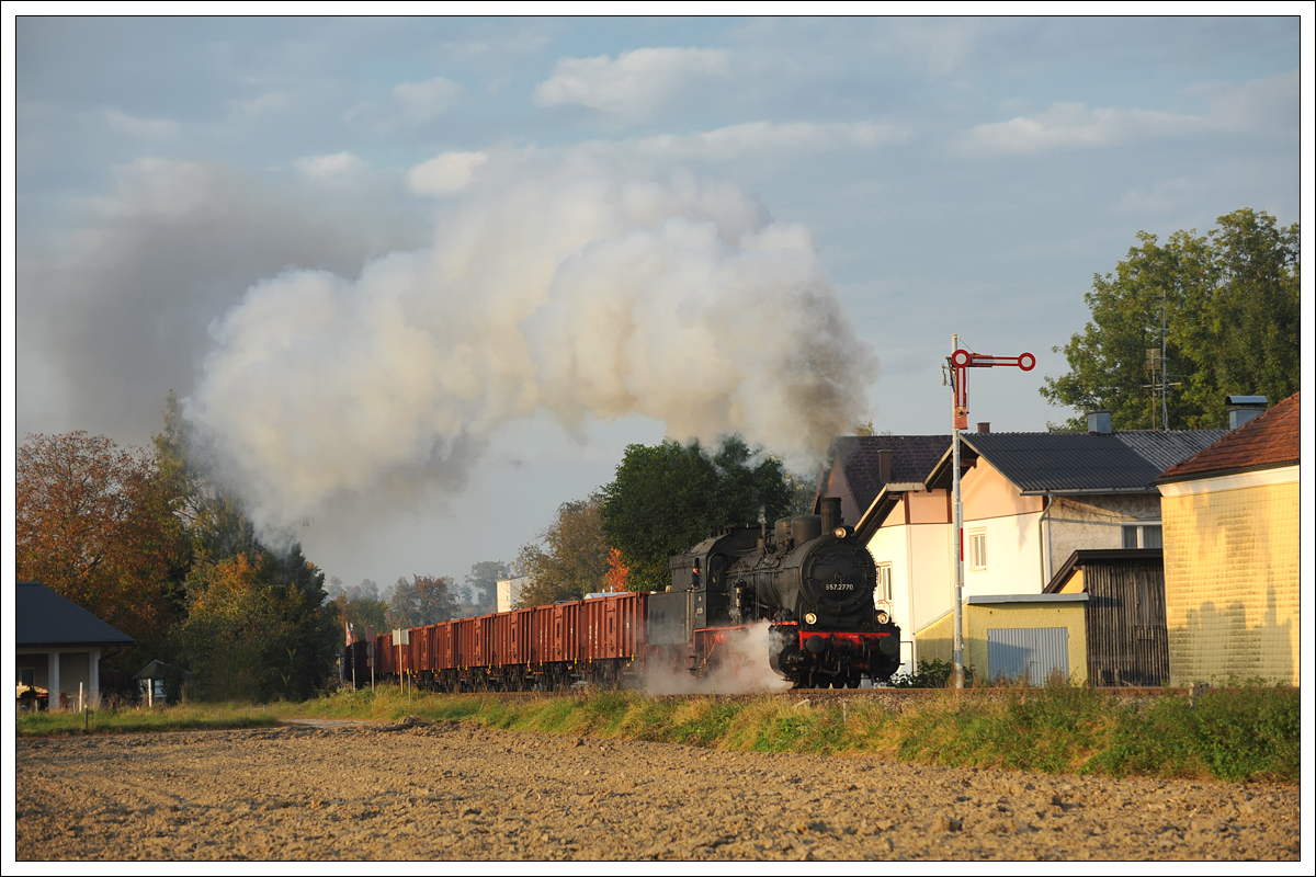 Jetzt im Herbst , und wenn man Glück hat noch dazu ohne Auto´s präsentiert sich 764.411 R bei bestem Licht im Bahnhof Preding.