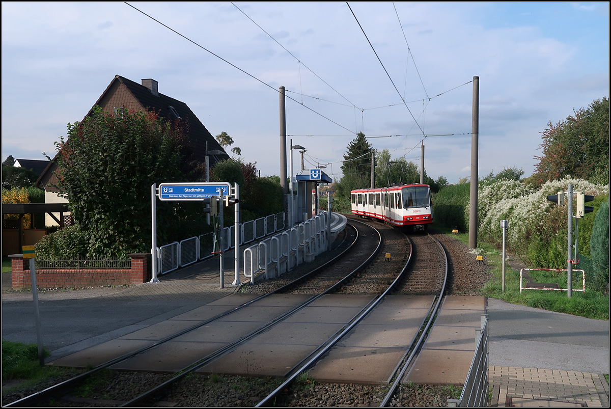 Der 21. sanierte und modernisierte B-Wagen 2413 (ex 2113) befindet sich im Liniendienst. Hier kurz vor der Haltestelle  Von-Sparr-Straße  am 23.10.2019.