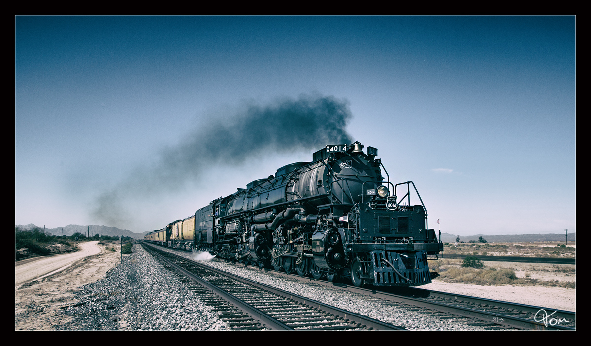 Union Pacific No 4014 Big Boy fährt bei den 150 Jahr Feierlichkeiten der Transkontinental Eisenbahn dem "The Great Race Across the Southwest" von San Bernardino nach Yuma. Die Superlativen der größten Dampflok der Welt gibt es hier Nachzulesen... https://de.wikipedia.org/wiki/UP-Klasse_4000