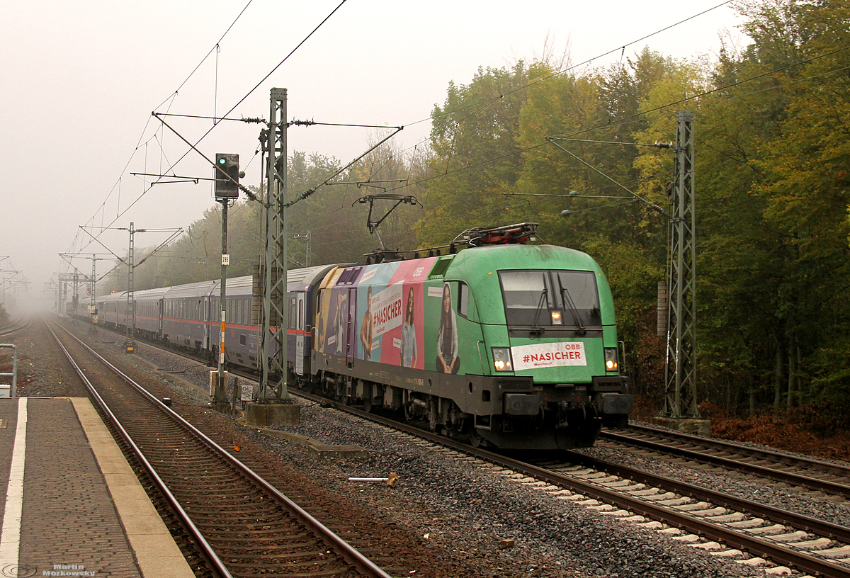 1144 236 fährt am 18.10.2019 mit EC151 durch den Bahnhof Peggau - Deutschfeistritz.