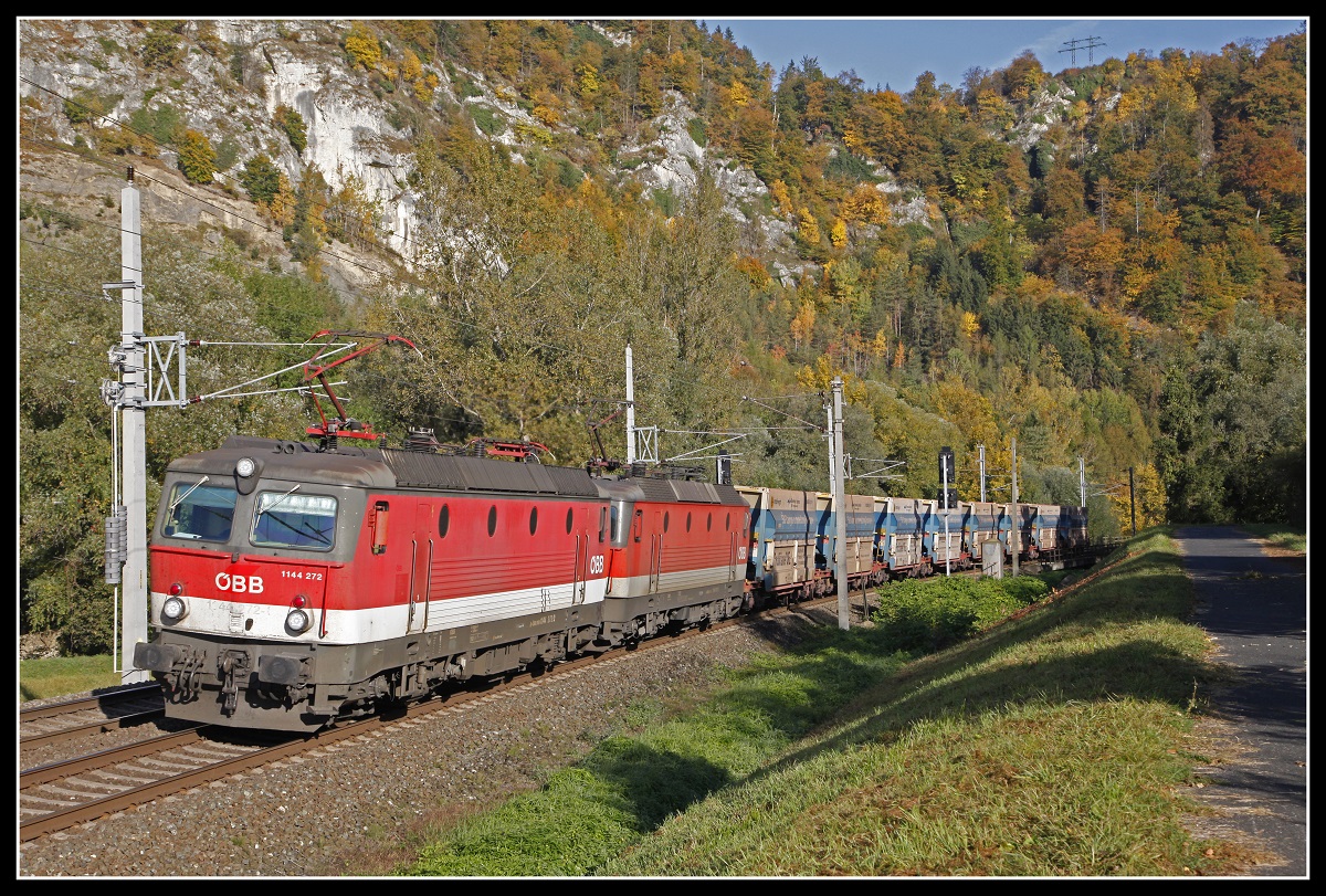 1144 272 + 1144 111 mit Güterzug bei Peggau am 18.10.2019.