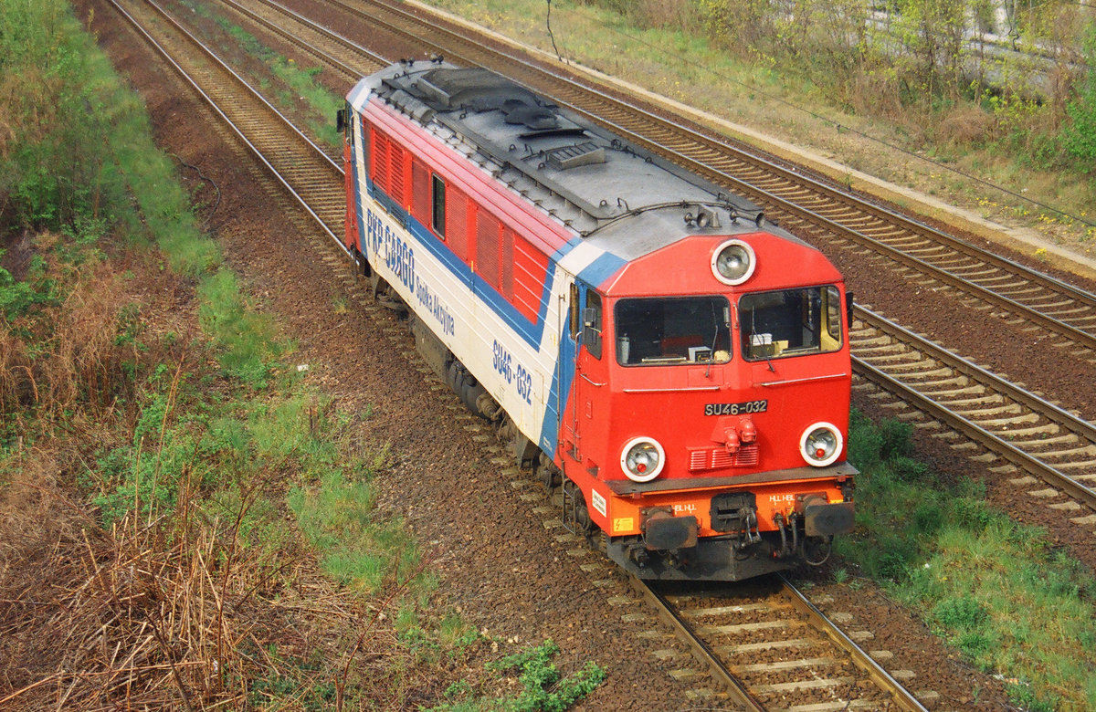18. April 2007,	Cottbus, auf dem Weg zum  Stadion der Freundschaft  konnte ich von der Brücke auf Lok SU 46-032 der PKP-Cargo schauen.