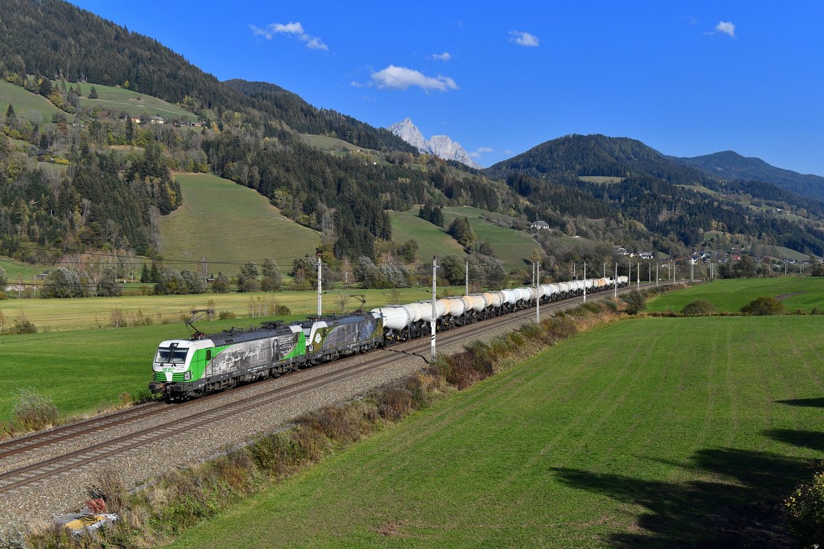 193 327 + 193 700 mit DGS 42129 am 26.10.2019 bei Brannenburg.
