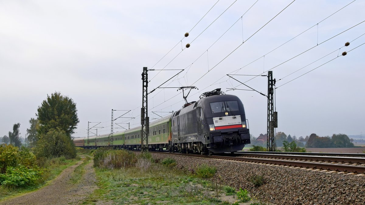 Der HSL-Nightrider 185 601 rollte am 20.10.19 mit einem Autozug von Falkenberg nach Rheinhausen durch Rodleben Richtung Magdeburg.