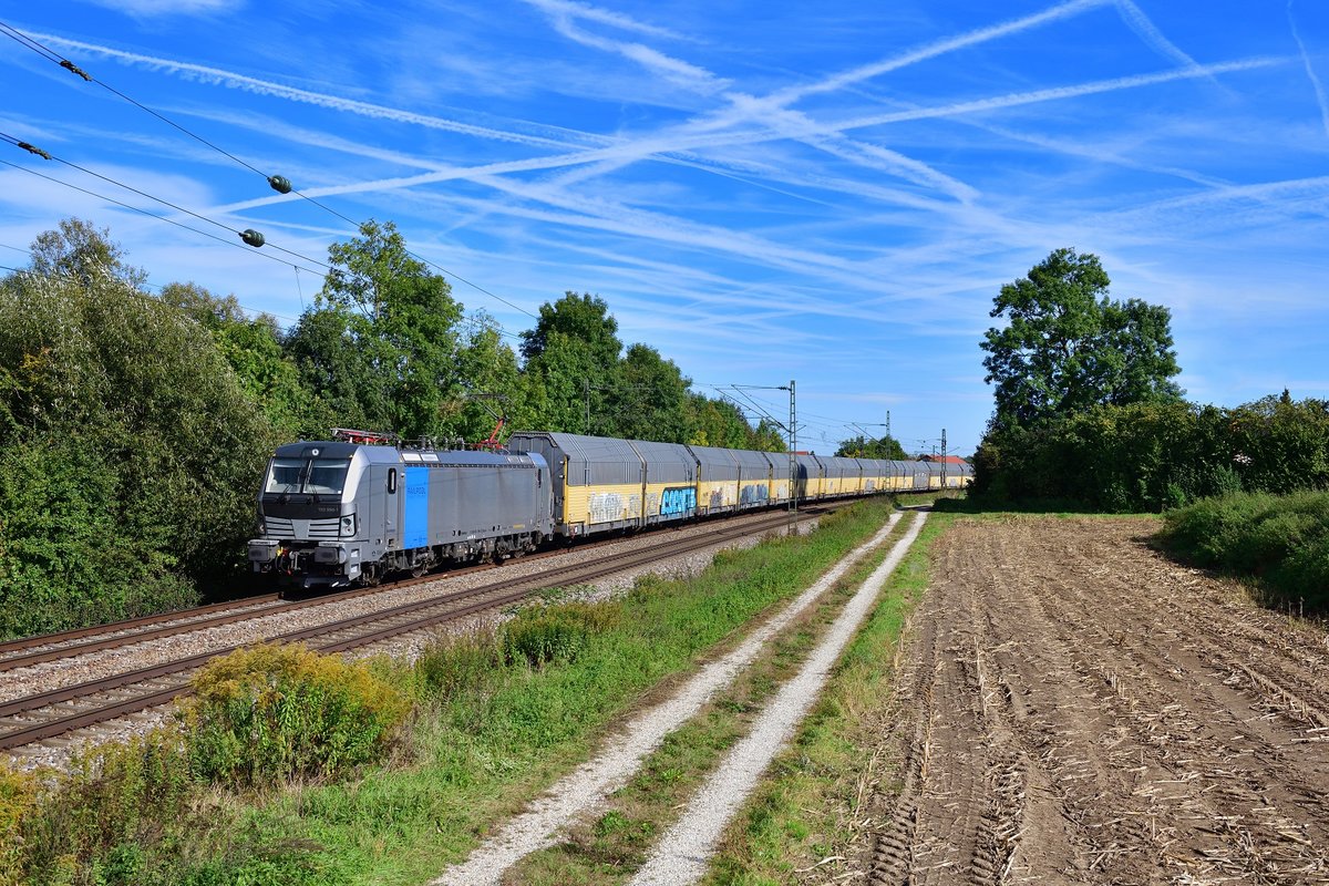 193 667 der MRCE führte für die TX Logistik am 23.09.19 einen KLV-Zug nach Italien durch Gräfenhainichen Richtung Bitterfeld.