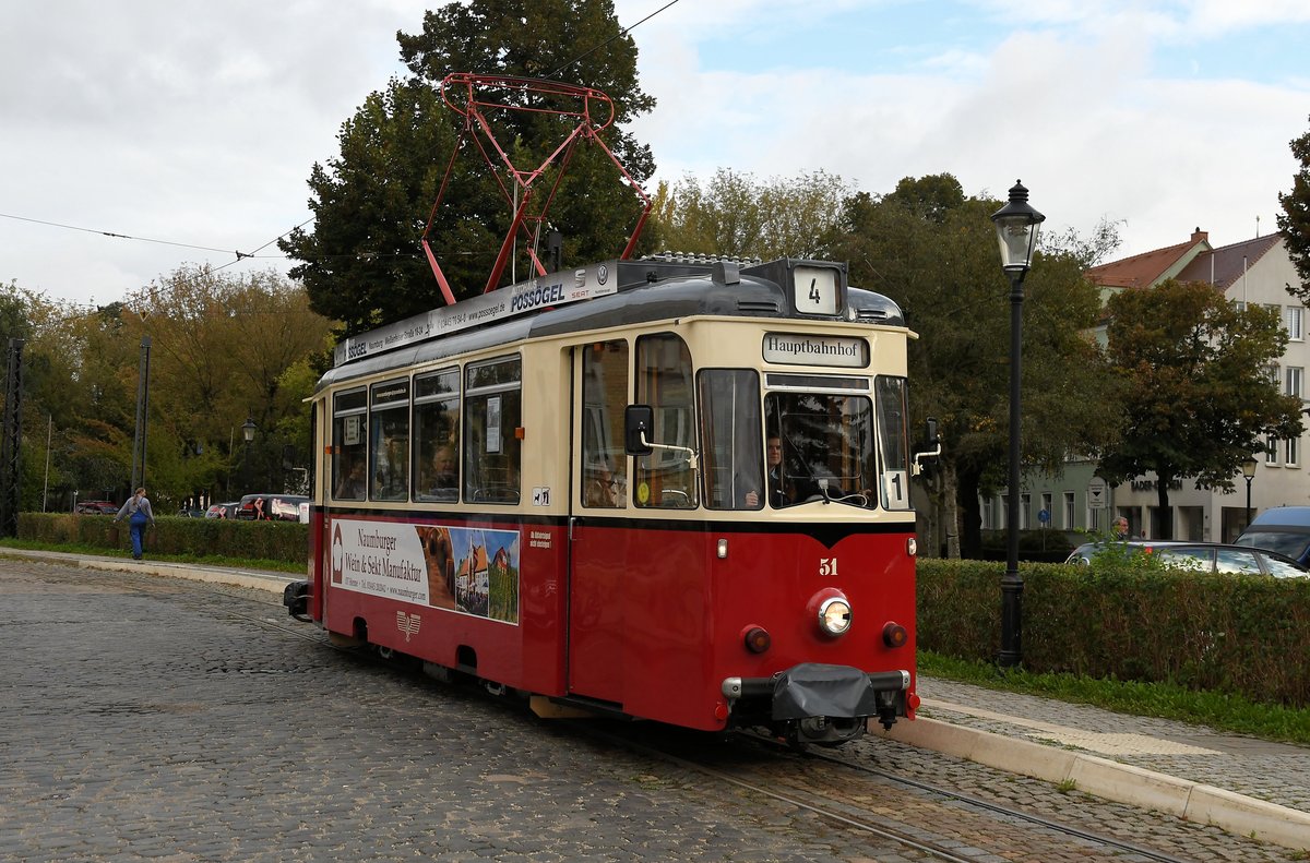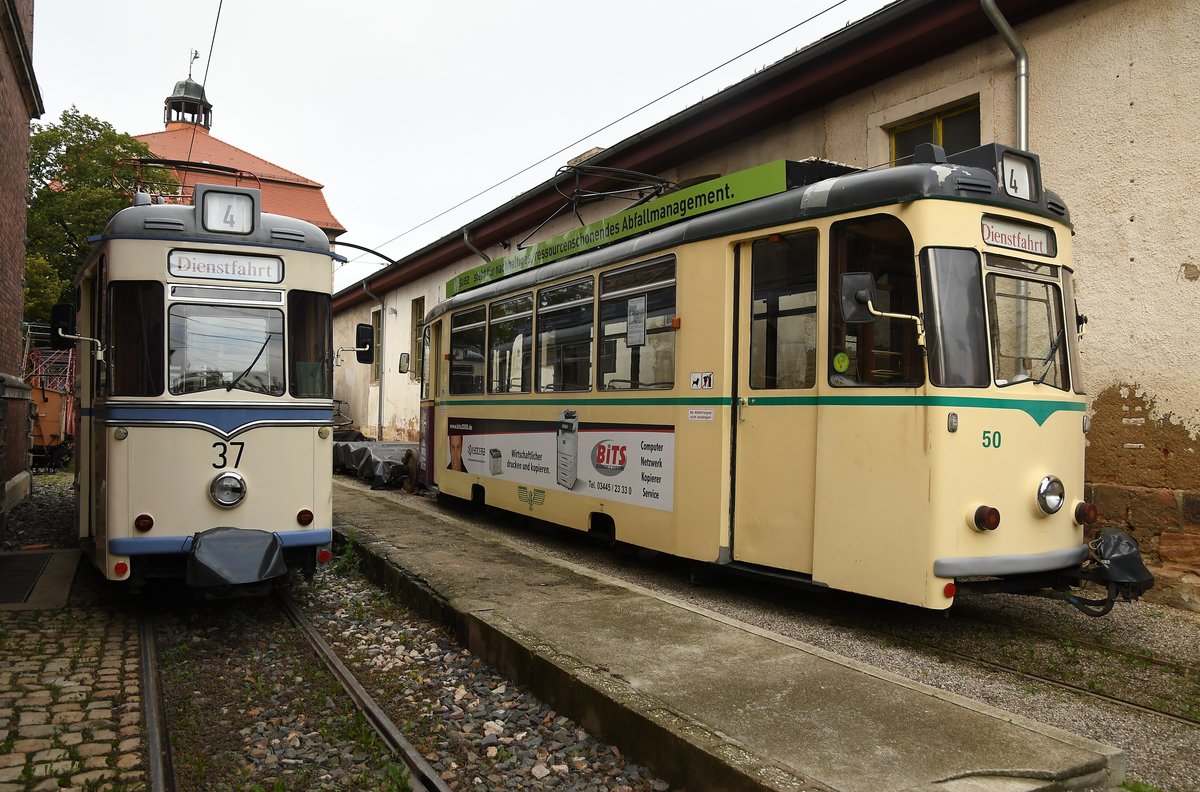 Ein Blick am 08.10.16 über den Zaun des Naumburger Depots: TW 37 und 50 geben sich die Ehre.