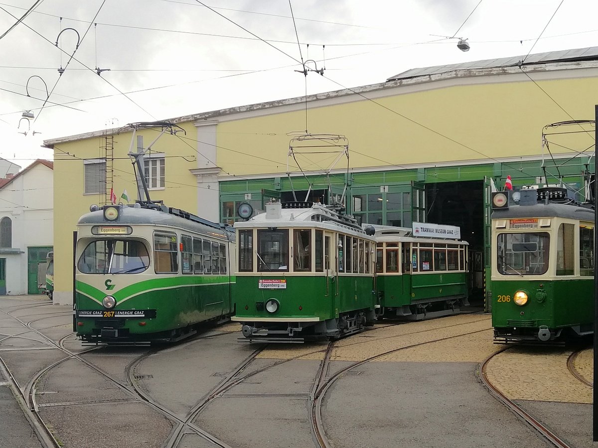 Graz. Zur Langen Nacht der Museen am 05.10.2019 diente TW 206 mit TW 267 und 121 als Oldtimer- shuttle zwischen dem Jakominiplatz und dem UKH Eggenberg.
