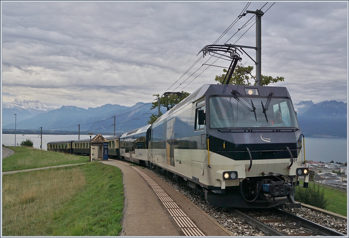 Überraschend zeigt sich der MOB 《Belle Epoque》 Zug 2214 am 3. Okt. 2019 in dieser herrlichen Zusammenstellung mit Ge 4/4 8001 und Komposition. Da ich mit dem Zug fuhr, war es nicht möglich, die lichttechnisch besser Seite zu nutzen.