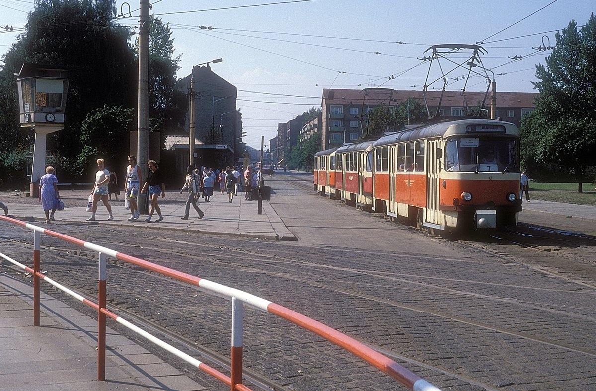 BERLIN, 21.06.2019, Zug Nr. 9109 als MetroTram17 nach Schöneweide in der Haltestelle Meeraner Straße; rechts Zug Nr. 2223 als Tram27 nach Weißensee Pasedagplatz