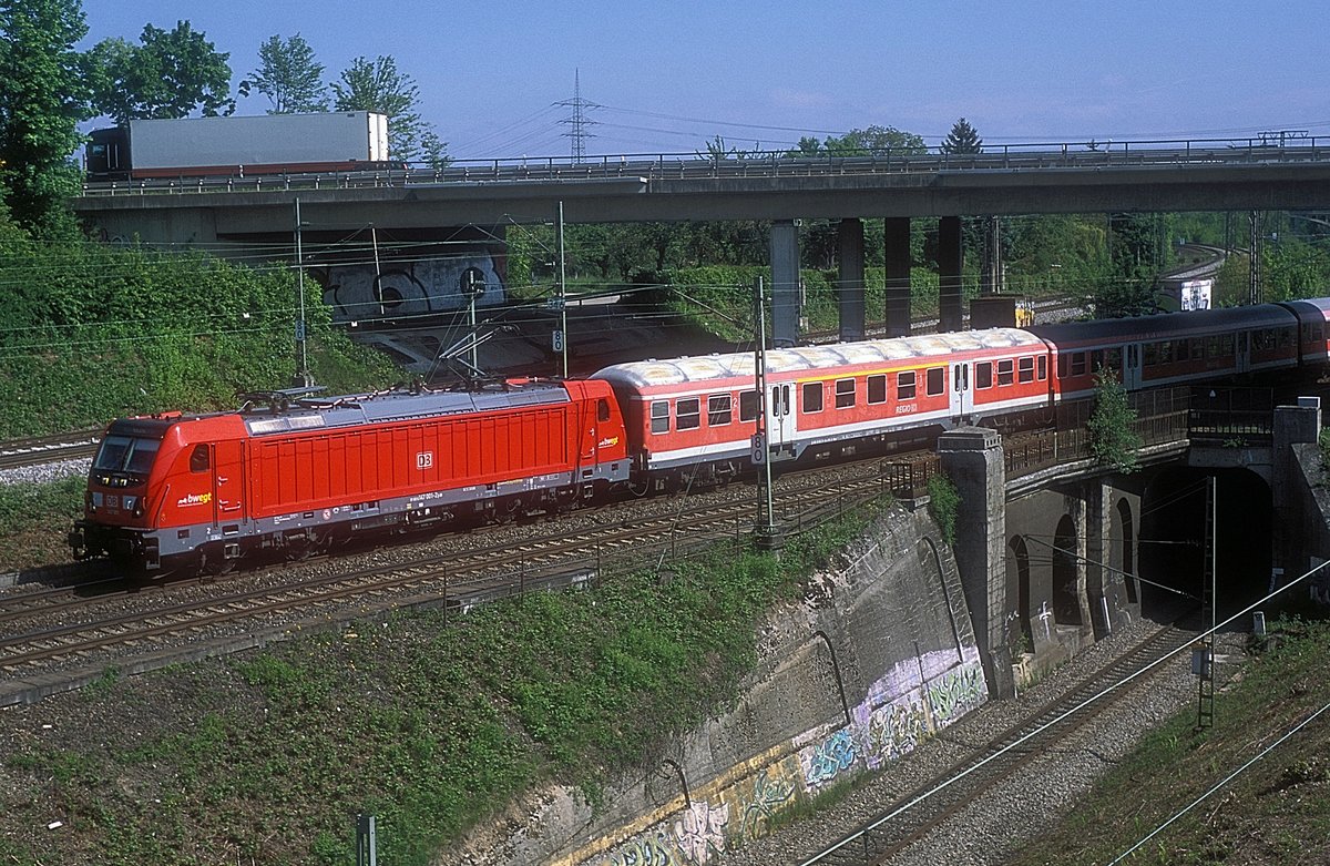 Nachschuss auf 147 010-3 von DB Regio Baden-Württemberg als RB 19112 von Stuttgart Hbf nach Neckarsulm, die den Bahnhof Asperg auf der Bahnstrecke Stuttgart–Würzburg (Frankenbahn | 4800) durchfährt.