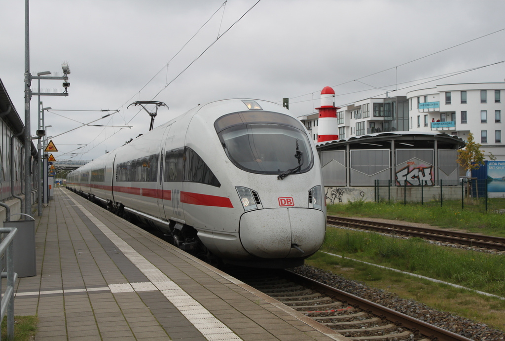 411 559-8  Passau  als ICE 1727(Warnemünde-München)bei der Durchfahrt als Leerzug in Warnemünde Werft.21.09.2019