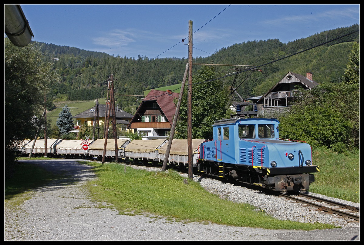 E4 bringt am 16.09.2019 einen leeren Schüttgutwagenzug ins Breitenauertal.
