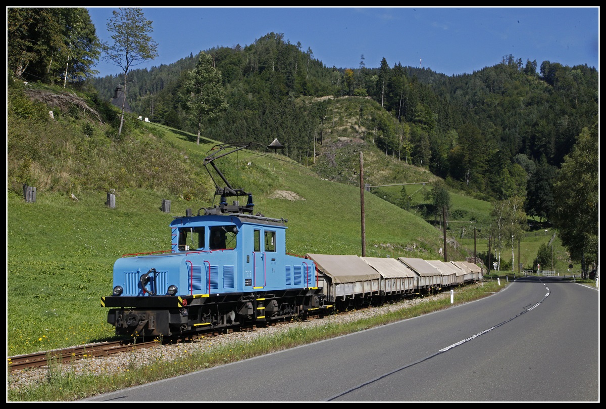 E4 mit Güterzug bei Schafferwerke am 16.09.2019.