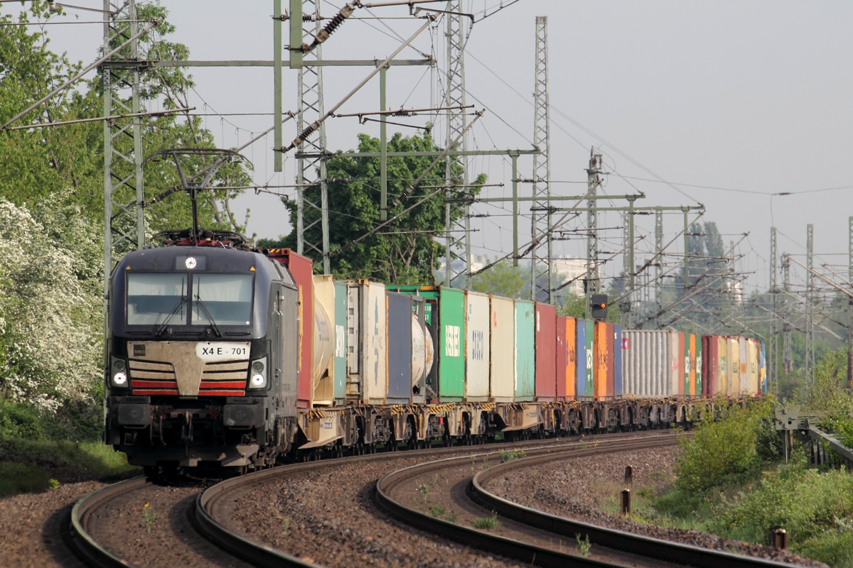 Am Mittag des 25.05.2019 fuhr HCTOR 162.005 (151 133-6)  Herzog  mit dem Containerzug nach Rheinhausen südlich vom Haltepunkt Auggen über die RHeintalbahn durchs Markgräflerland in Richtung Müllheim (Baden).