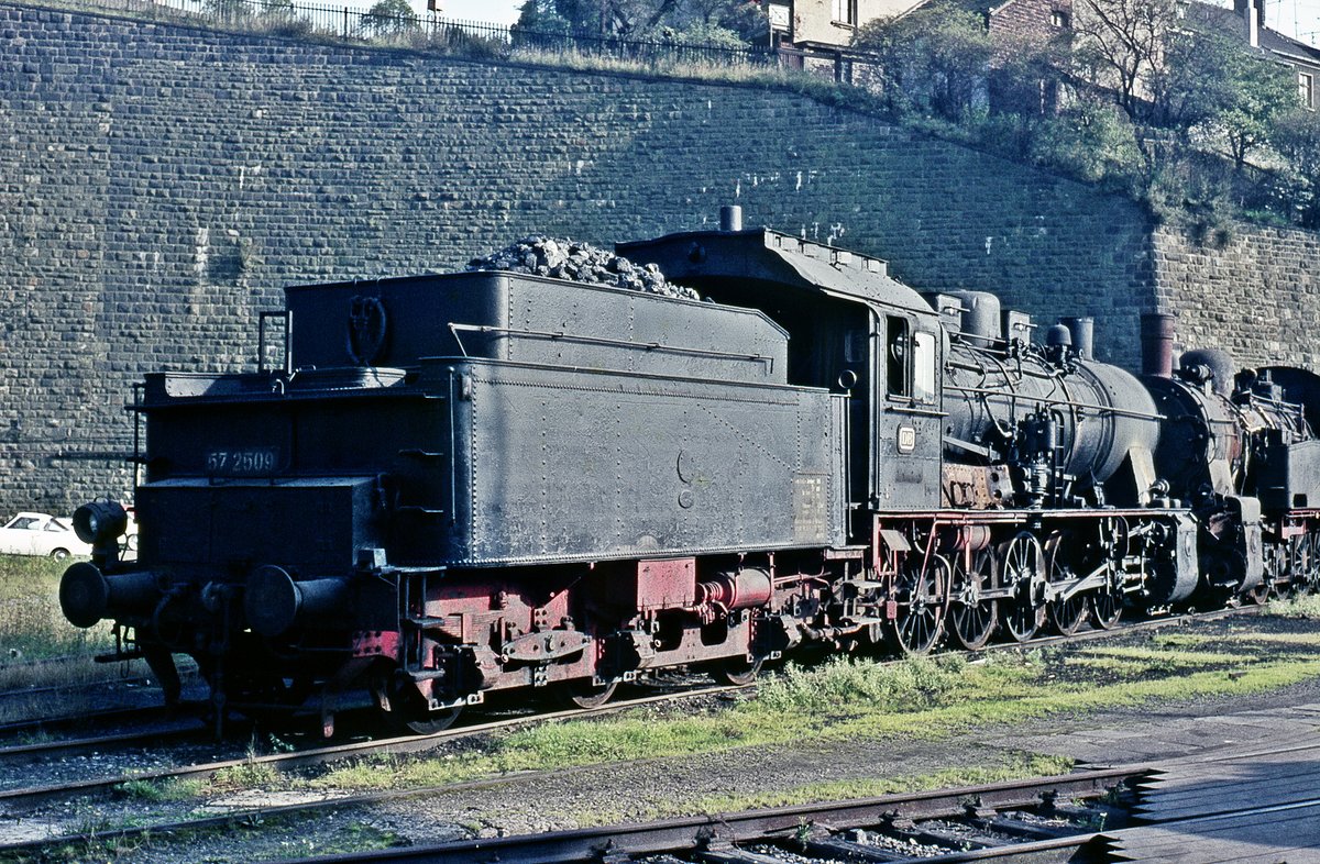 Um 1978 fährt 103 157-4 mit einem IC aus dem Düsseldorfer Hauptbahnhof in Richtung Süden aus. Der Zug führte damals nur die erste Wagenklasse, das Zweiklassensystem bei den IC wurde erst ein Jahr später eingeführt. Im Hintergrund sind noch die alten Hallendächer erkennbar, die ab 1980 durch einen Neubau ersetzt wurden.