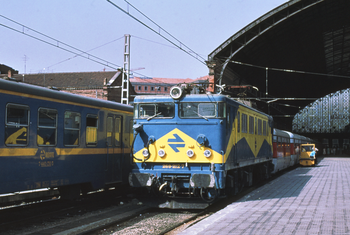 Mit einem Personenzug aus Ljubljana ist 644-013 am 03.05.1989 in Novo Mesto angekommen. Die JZ besaß 25 dieser von Macosa/Spanien im Jahr 1975 gebauten Maschinen, bei denen es sich um einen Lizenzbau des General Motors-Typs G22U handelt. Im Unterschied zu den Co'Co'-Lokomotiven der Reihe 661 waren nur vier der sechs Achsen motorisiert (Achsfolge (A1A)'(A1A)').