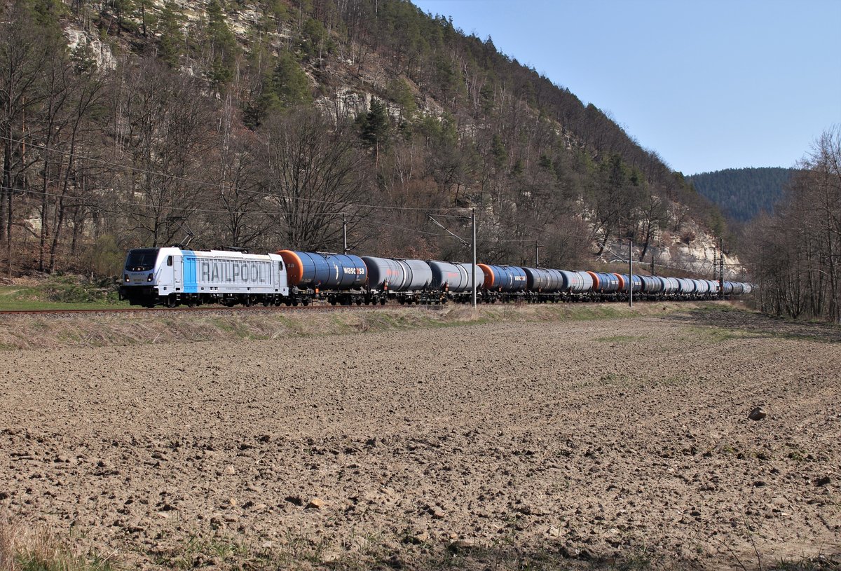 METRANS Rail s.r.o., Praha [CZ] mit der Railpool Lok "186 433-9" [NVR-Nummer: 91 80 6186 433-9 D-Rpool] und Containerzug am 19.03.20 Bf. Saarmund.