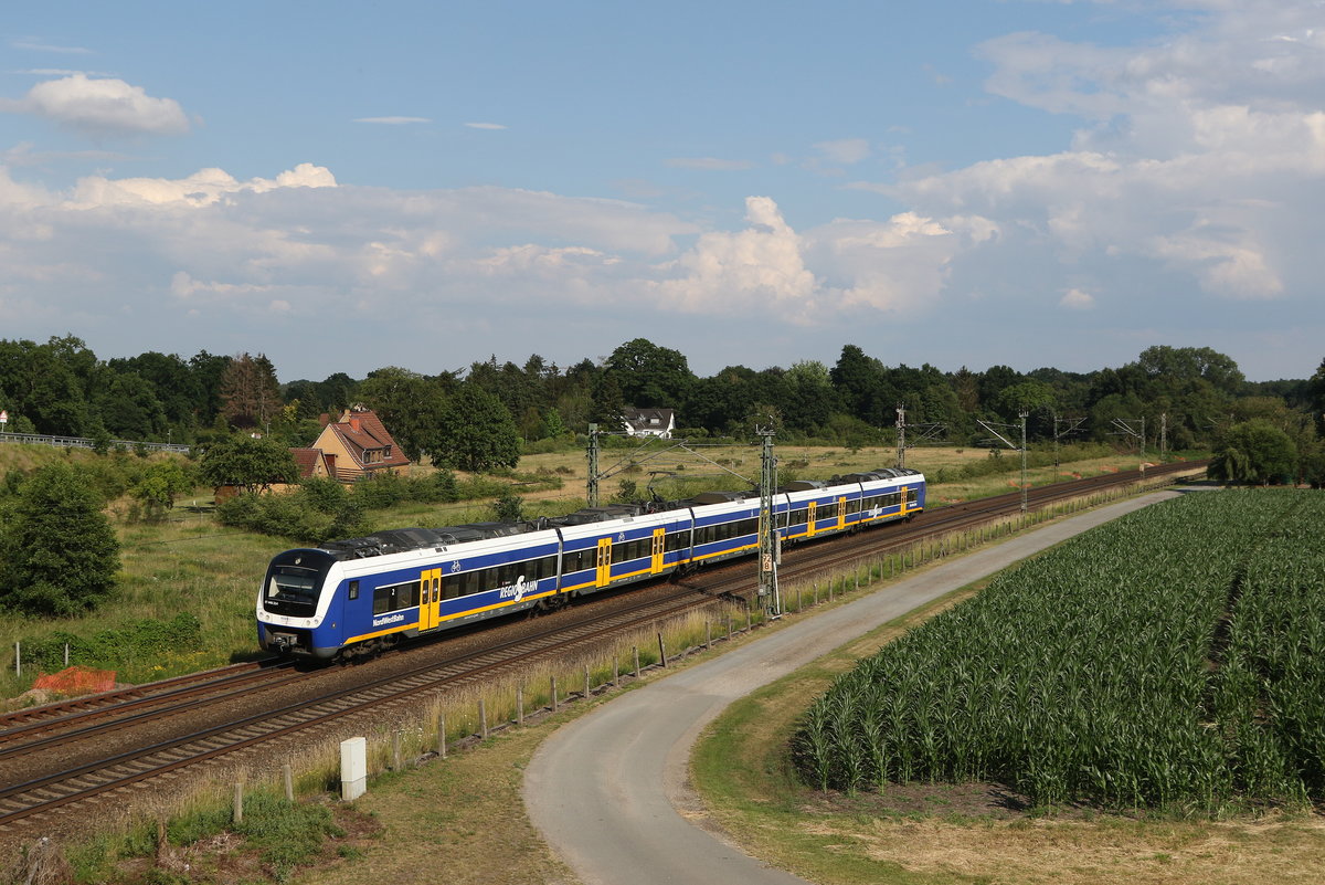 Triebzug 862 von National Express war Ende Juli 2020 in Ennepetal als RE7 Richtung Krefeld unterwegs.