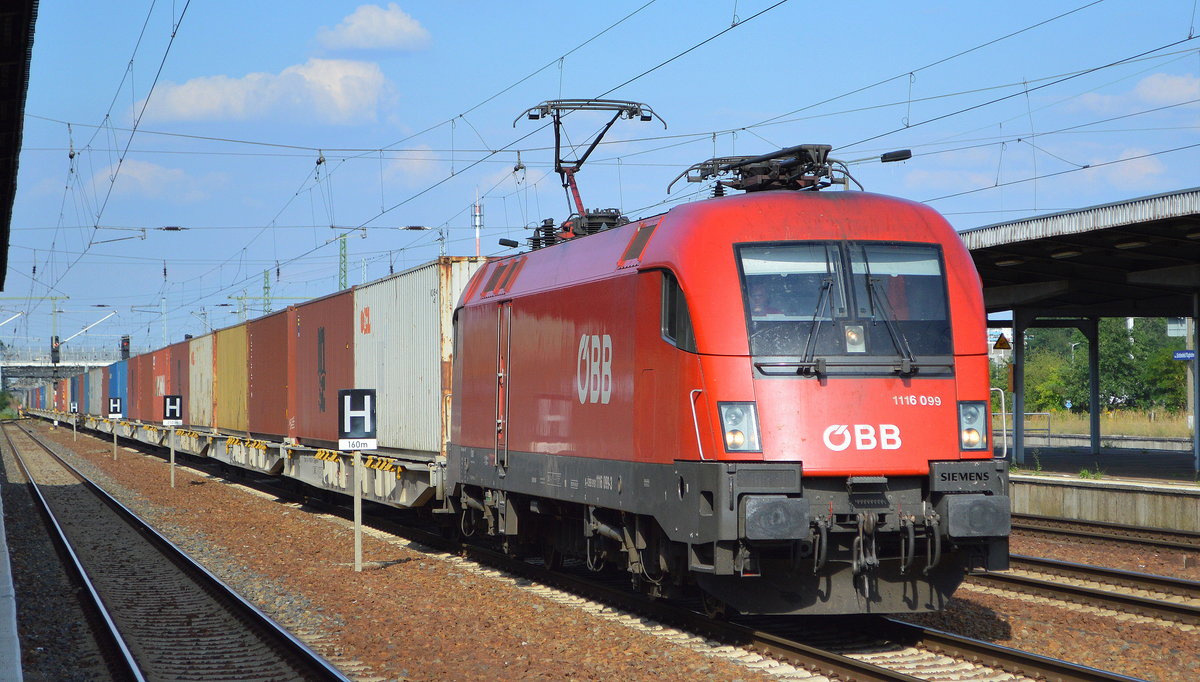 ÖBB - Österreichische Bundesbahnen [A]/Rail Cargo Austria AG mit "1116 099" [NVR-Nummer: 91 81 1116 099-3 A-ÖBB] mit Containerzug am 17.08.20 Bf. Flughafen Berlin Schönefeld.