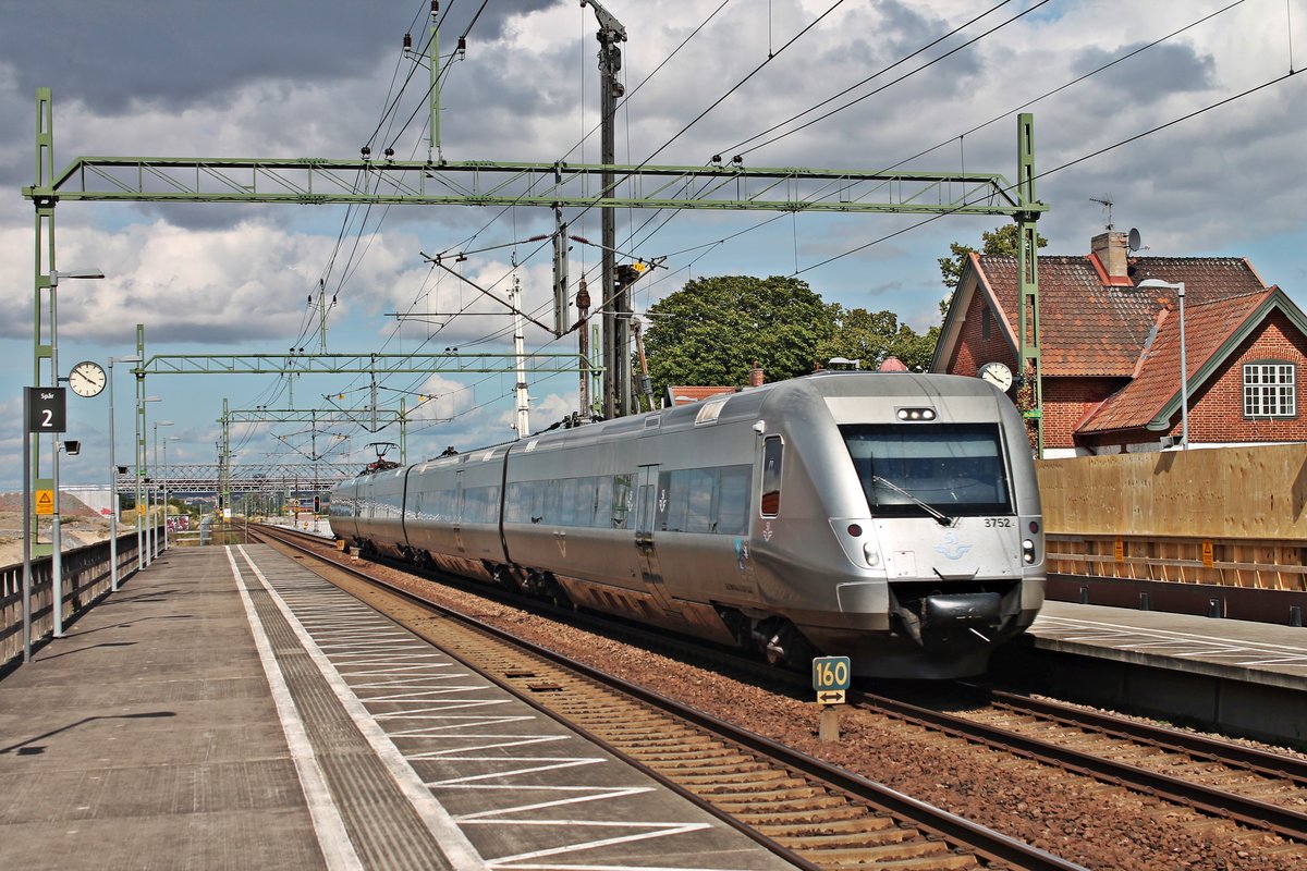Durchfahrt am Nachmittag des 17.07.2019 von SJ X3 3752 als SJ Snabbtåg (Göteborg C - Malmö C) durch den Haltepunkt von Hjärup in Richtung Zielbahnhof, welcher in Kürze erreicht wird.