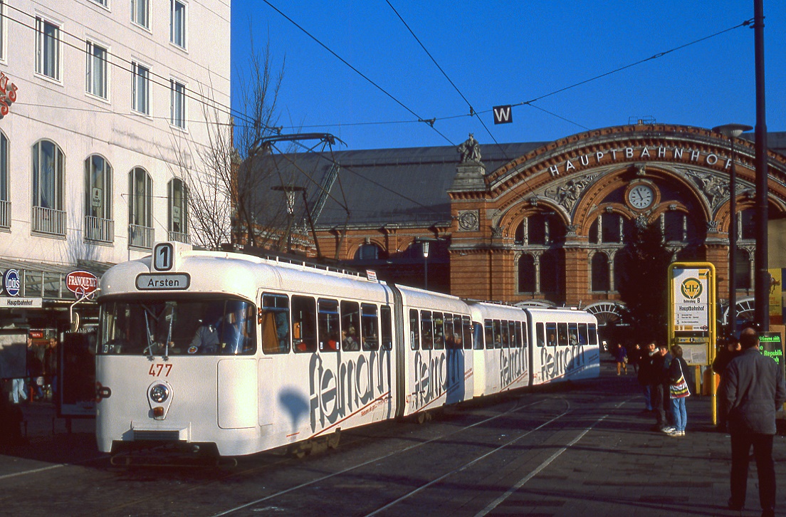 Auf der Linie 904 nach Hüttenheim ist der DVG-Tw 1063 Mitte der 1980er Jahre auf der Königstraße unterwegs